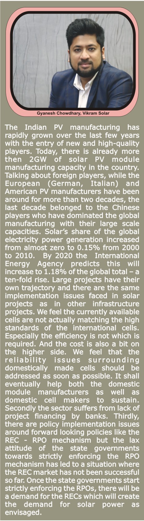 Gyanesh Chaudhary, Vikram Solar MD and CEO, says, "If safeguard duty is