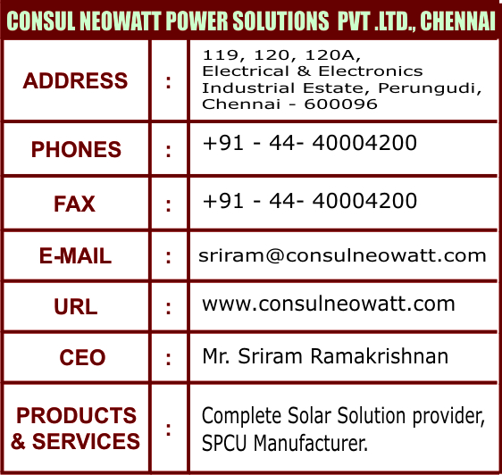 Consul Neowatt Power Solutions Pvt. Ltd. Is the only Indian company to