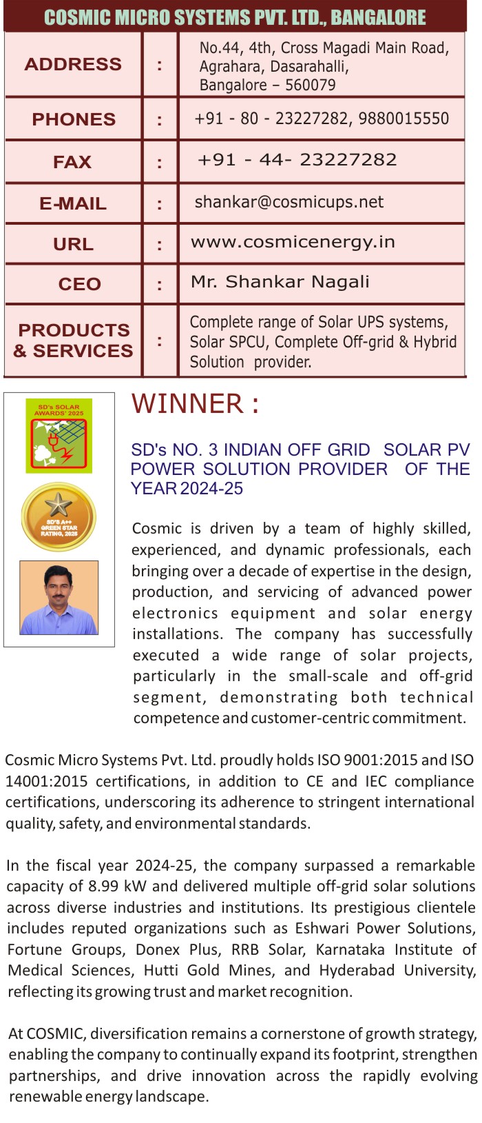 SD's Top 3, Indian Hybrid Solar Power Solution Provider of the year 2024-2025