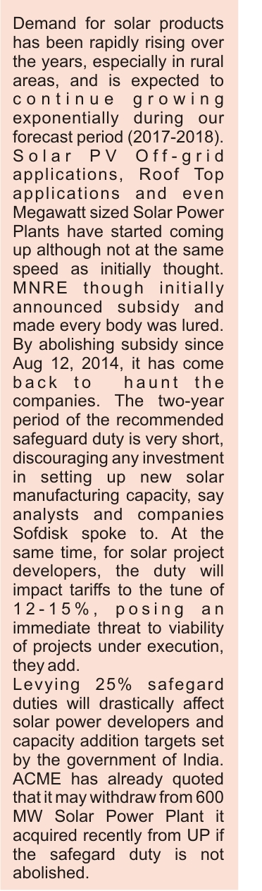project developers in India feel that imposing a 25% safeguard duty on solar