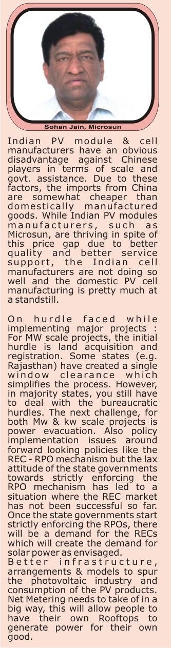 players such as BHEL, WELSPUN, BEL, CEL, TATA Solar, BOSCH, Solar