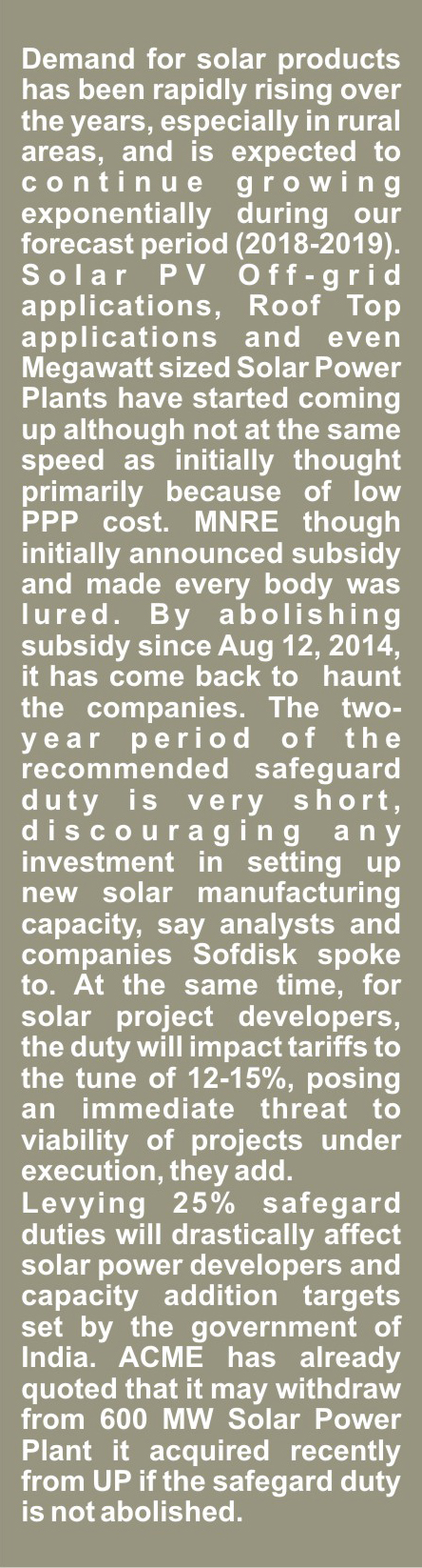 25% safeguard duty on solar cells and modules from China and Malaysia will be a