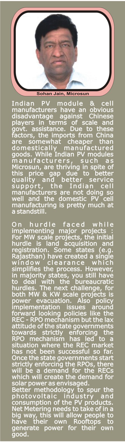 Mr Sohan Jain, MD, Microsun Solar, feels 50 paise/kWh increase in electricity