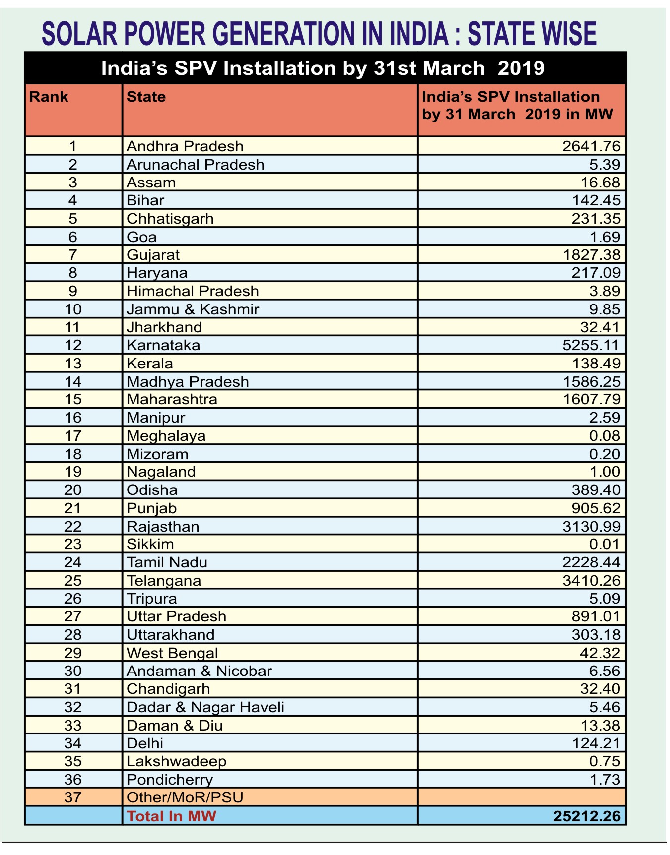of March 2019. India need to increase Solar Power by commissioning 70-75 GW to