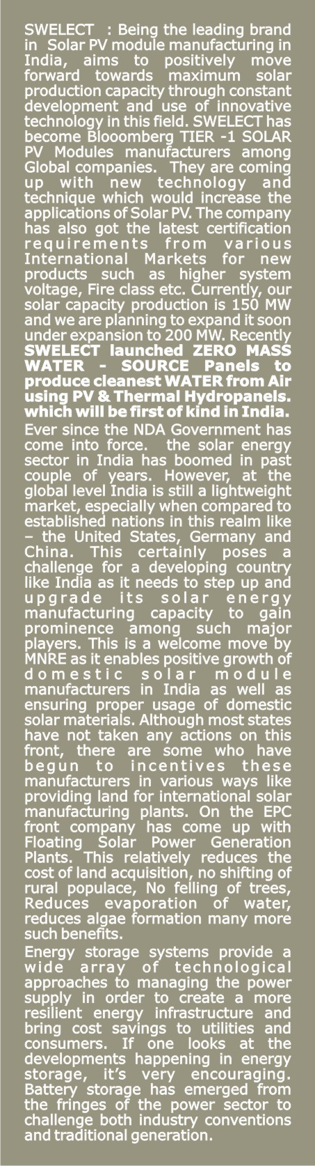 Solar, a reputed SPV Panel manufacturer and has invested heavily on increasing