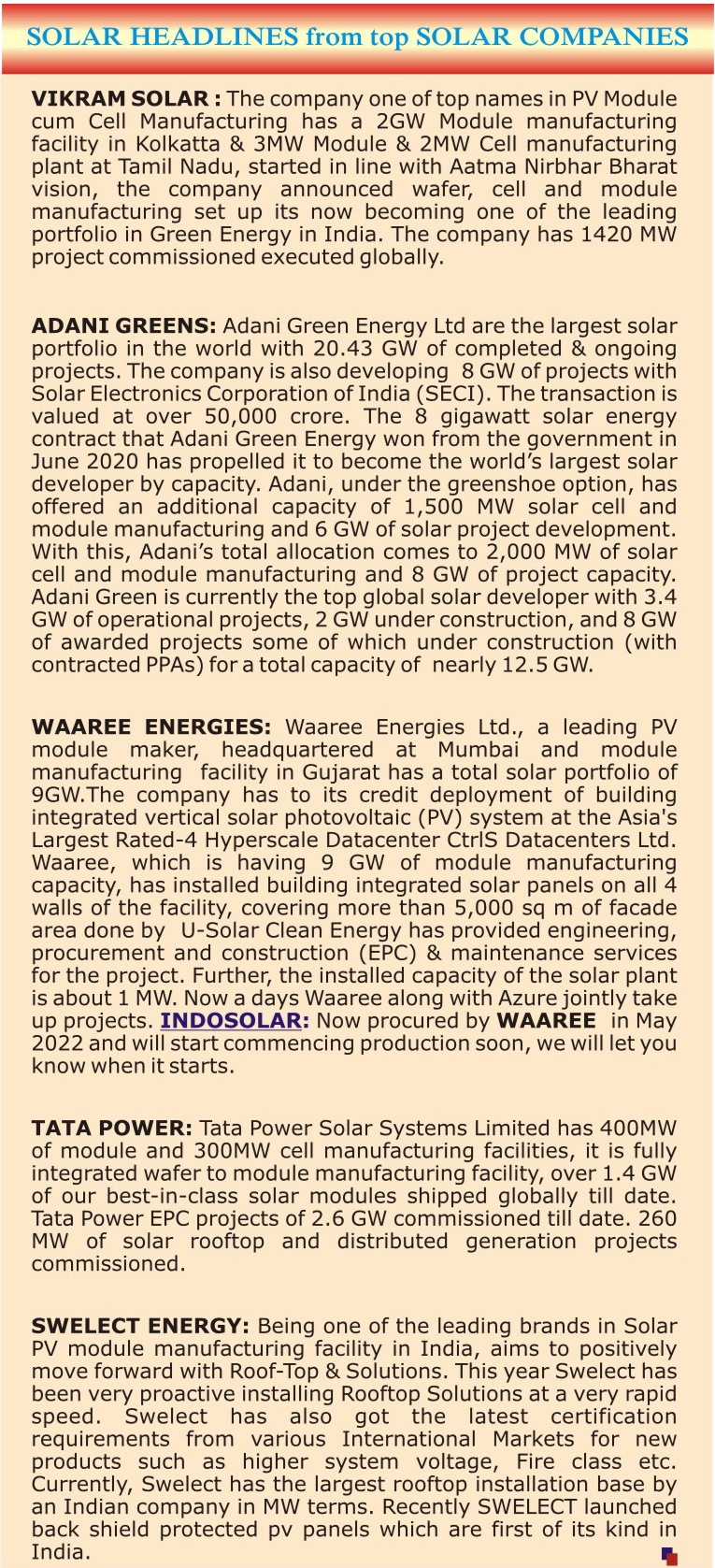 goal of 100 GW solar by 2022. With the highest solar energy production in