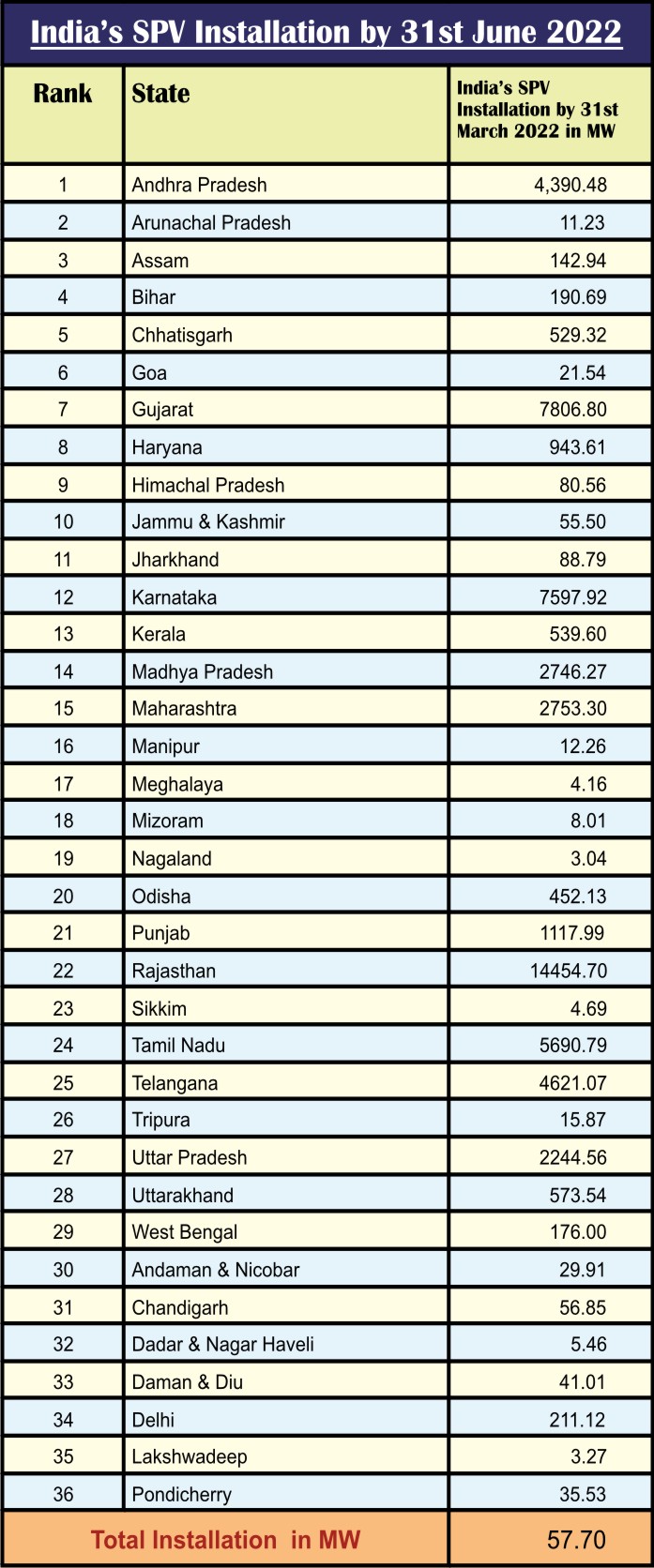 India has crossed 57.70 GW in 2021-22 up from Solar Power Capacity from 40.08